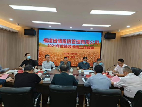 2022年11月18日上午,省局考核組一行八人到省儲備糧管理公司召開2021年度績效考核工作會議。公司領(lǐng)導(dǎo)班子、本部職工及長樂、福州、福清直屬庫代表共46人參加會議。