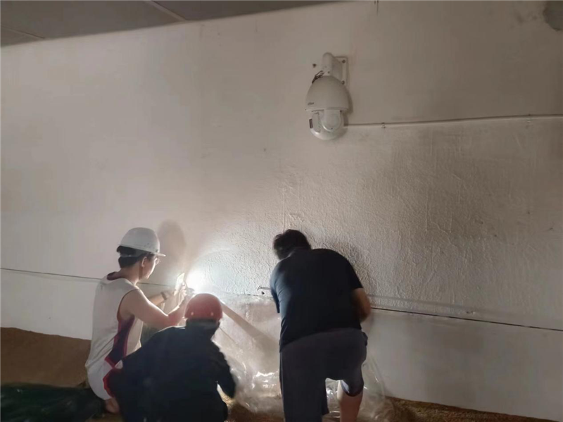 臺風間歇期,全體值班人員抓住風停雨歇最佳時機,以每組二三人的小分隊,立即進入各倉查漏,集中精力查看菱鎂板被掀翻的倉房,及時對滲漏處采取防水盛漏處理。