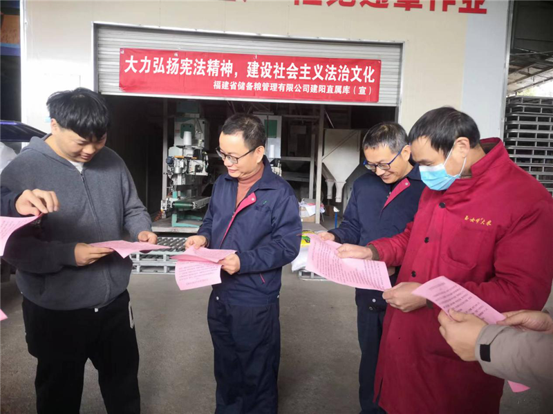 12月5日,建陽(yáng)直屬庫(kù)骨干員工一行7人走進(jìn)企業(yè)到金夏米業(yè)公司、益農(nóng)信息社等開(kāi)展憲法宣傳活動(dòng)。通過(guò)貼近群眾,引導(dǎo)和幫助樹(shù)立法制意識(shí),傳播法治精神,真正做到全面推動(dòng)憲法進(jìn)機(jī)關(guān)、進(jìn)企事業(yè)單位,持續(xù)營(yíng)造“弘揚(yáng)憲法精神,維護(hù)憲法權(quán)威,加強(qiáng)憲法實(shí)施”的濃厚氛圍。本次活動(dòng)共發(fā)放普法宣傳資料50余份,為現(xiàn)場(chǎng)群眾耐心細(xì)致地講解相關(guān)法律法規(guī)知識(shí),宣傳黨的二十大精神。