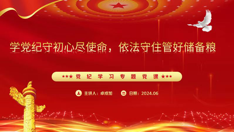泉州直屬庫開展“學(xué)黨紀(jì)守初心盡使命依法守住管好儲(chǔ)備糧”專題黨課