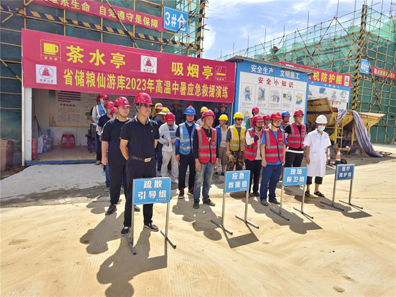 為充分應(yīng)對項目推進(jìn)期間高溫天氣人員中暑應(yīng)急事件,保障發(fā)生人員中暑時能有組織、有指揮、有分工、有秩序,以最快捷、最有效地對事故進(jìn)行處理,防止事故擴(kuò)大造成人身傷亡及財產(chǎn)損失,6月26日,仙游儲備庫籌建處組織項目各參建單位舉行“安全生產(chǎn)月”高溫中暑應(yīng)急救援演練。