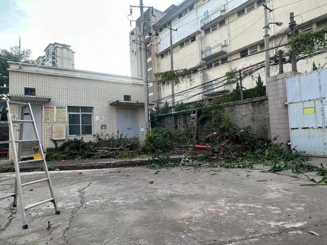 安全生產領導小組對庫區(qū)的辦公樓、微型消防站、配電間、水泵房、門衛(wèi)室、圍墻、電動車充電樁等重點區(qū)域,開展地毯式、全覆蓋、無死角的安全隱患排查。重點檢查了消防設施整備、庫區(qū)警示標牌設置、老舊線路及設施設備等。檢查期間,發(fā)現(xiàn)部分綠化樹的枝葉纏繞電線的情況,對于該問題及時組織相關人員進行樹枝修剪,消除安全隱患。