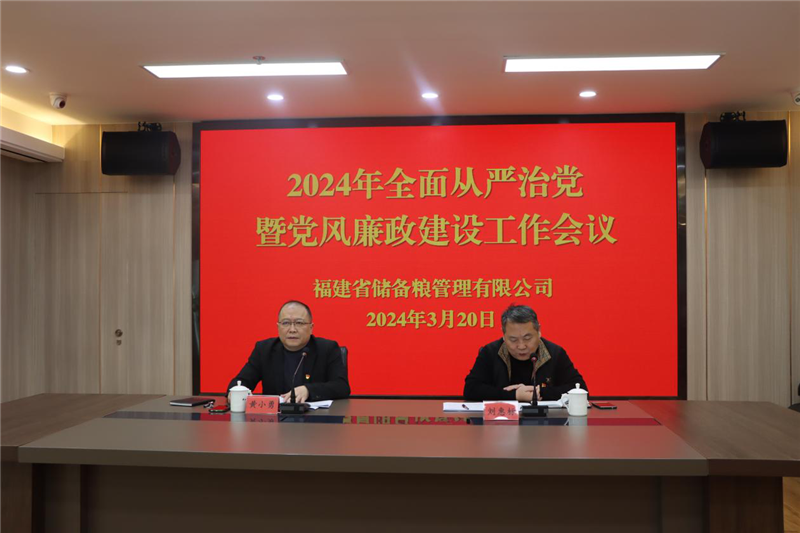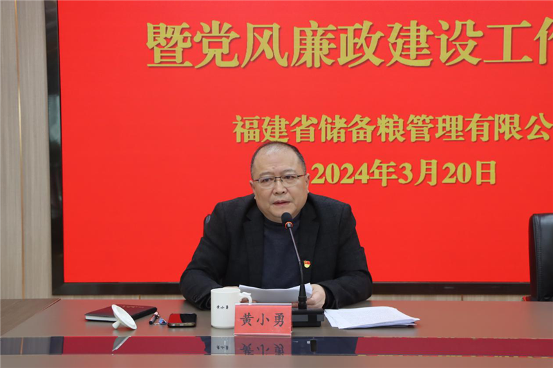 3月20日上午,福建省儲(chǔ)備糧管理有限公司召開全公司系統(tǒng)2024年全面從嚴(yán)治黨暨黨風(fēng)廉政建設(shè)工作視頻會(huì)。黨委書記、董事長(zhǎng)黃小勇出席會(huì)議并講話。會(huì)議由黨委副書記、總經(jīng)理劉惠標(biāo)主持,公司班子成員、機(jī)關(guān)本部職工及福州直屬庫職工在主會(huì)場(chǎng)參加會(huì)議,各直屬庫職工在分會(huì)場(chǎng)參加會(huì)議。