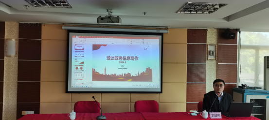 5月16日下午,省政府辦公廳信息處二級主任科員劉博裕作淺談政務信息寫作授課。他就政務信息的定義、分類以及政務信息寫作的基本要求和方法進行講解,并結合自身工作經(jīng)歷,深入淺出、通俗易懂地講授了如何錘煉寫作技巧、練就慧眼巧妙選題等政務信息寫作要點。