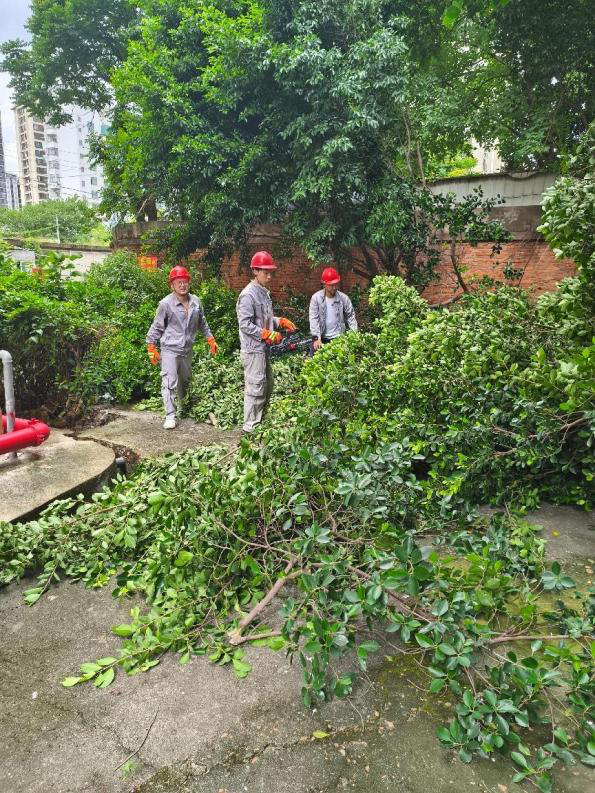 全體人員對庫區(qū)所有樹木開展全面、細致排查,將生長態(tài)勢不穩(wěn)定、可能存在安全隱患的樹木進行加固處理和樹木修剪清掘作業(yè),并清運倒伏樹木殘枝,消除潛在隱患。