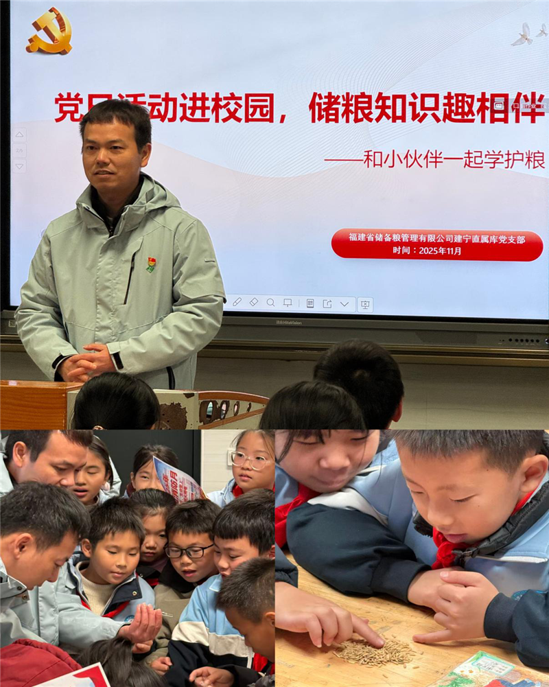11月21日,建寧庫黨支部以“黨日活動(dòng)進(jìn)校園,儲糧知識趣相伴”為主題,走進(jìn)建寧縣閩江源小學(xué),為同學(xué)們帶來一場集知識性、趣味性于一體的“儲糧科普+消防安全”雙主題課堂。